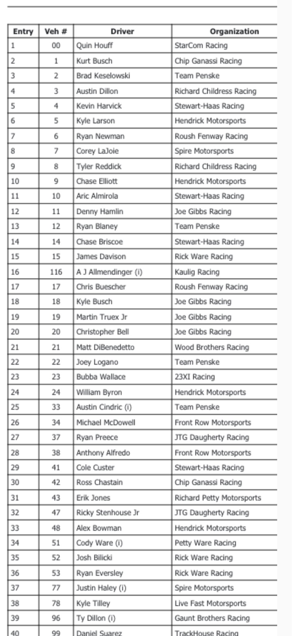 Race postponed to October 4. 930 pm NASCAR Race Hub. The following includes all on-track action.